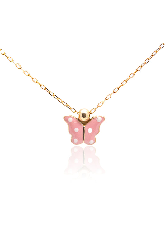 Lant cu pandantiv fluturas din aur galben 14k pentru copii