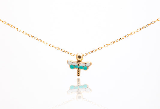 Lant cu pandantiv libelula din aur galben de 14k pentru copii