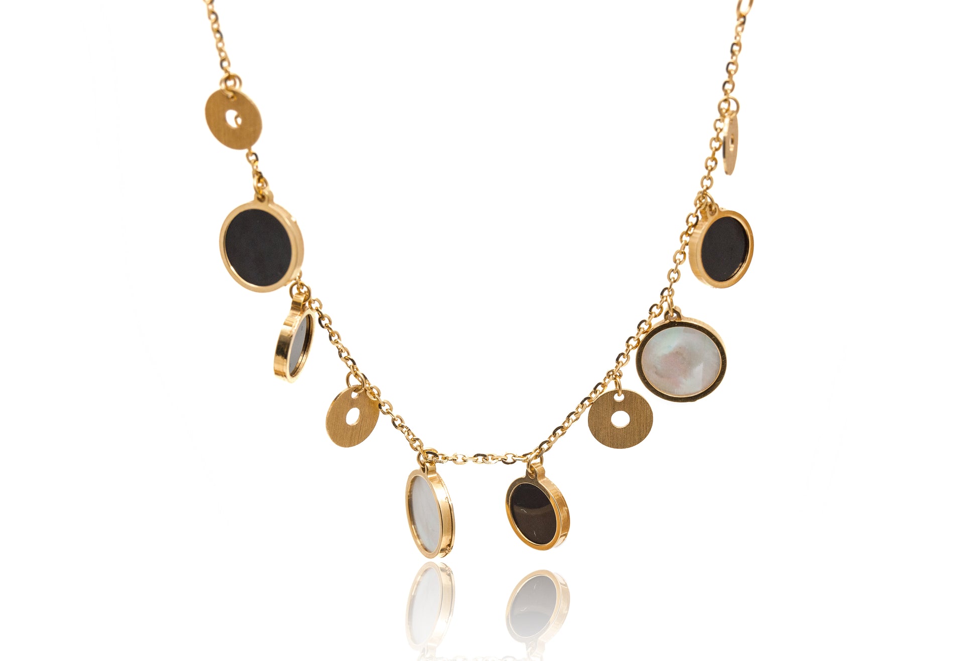 Bratara cu sidef de perla si onix aur galben 18K
