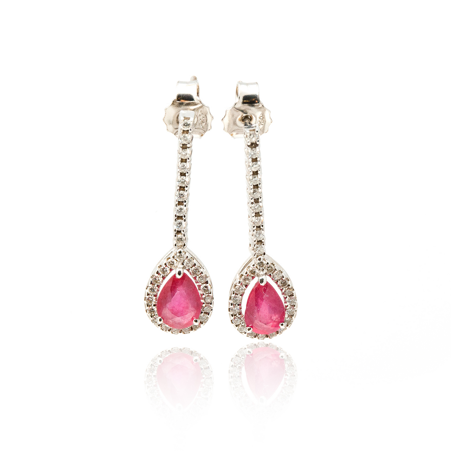 Cercei aur alb 18k cu Rubine de 0.80ct si Diamante de 0.40ct