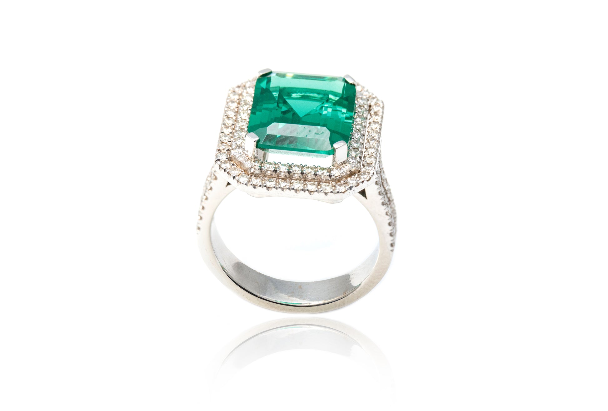 Inel aur alb 18k cu Green Citrin 5,00CT si Diamante 0,75CT