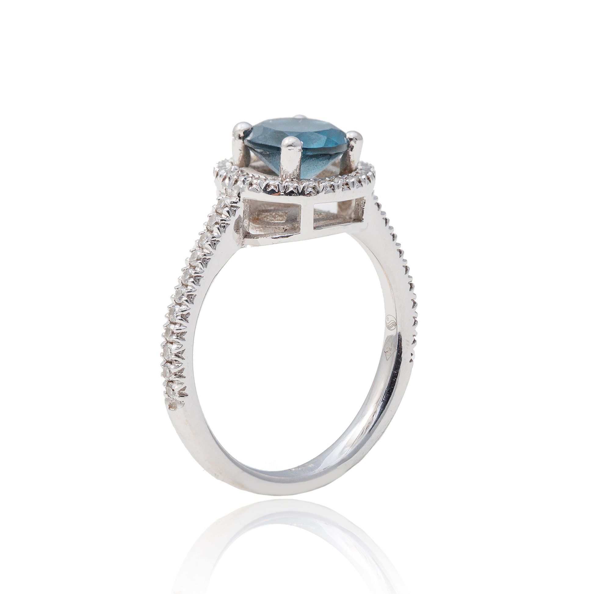 Inel aur alb 18k cu Topaz London Blue de 1.20ct si diamante de 0.39ct