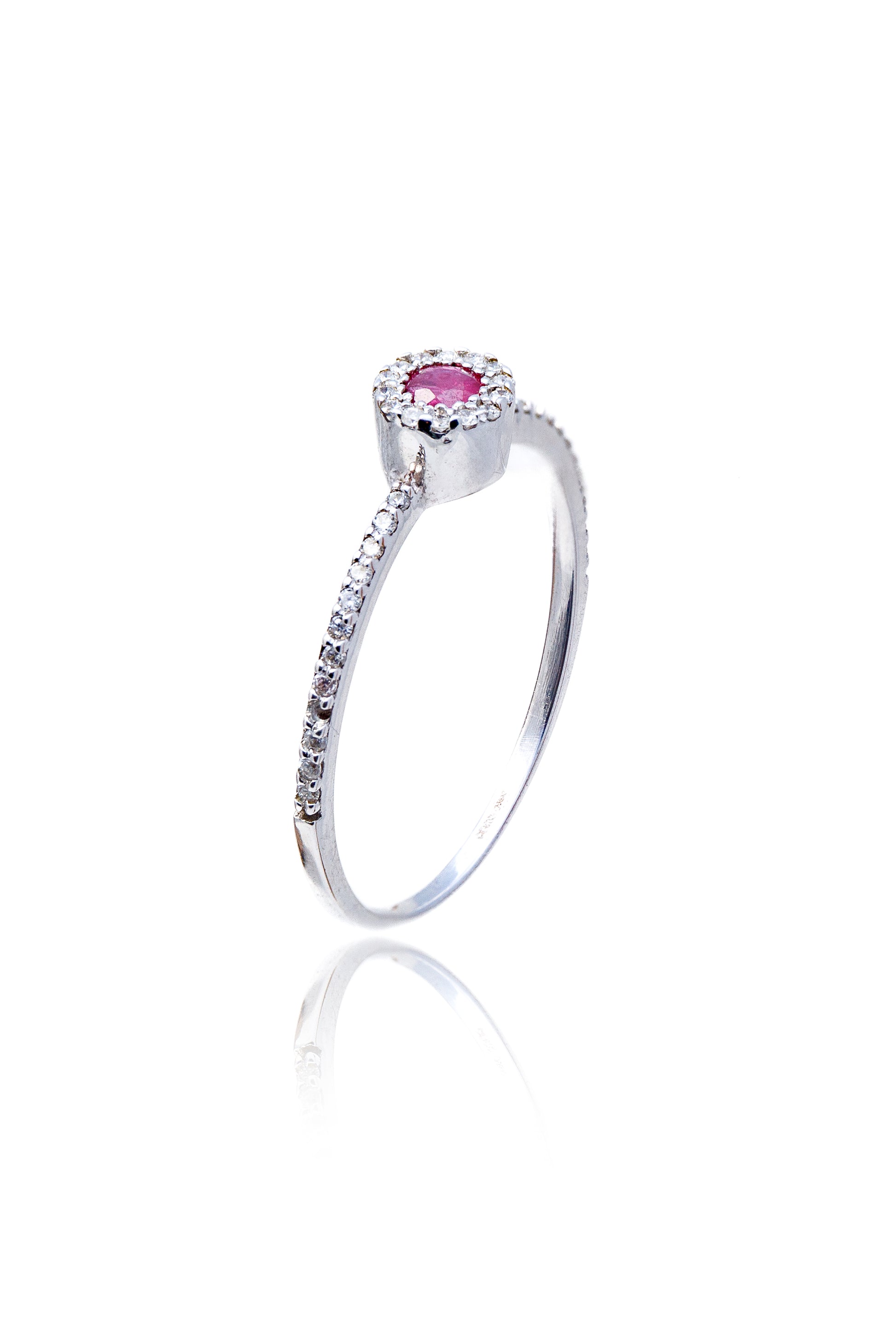 Inel aur alb de 18 k cu rubin si diamante de 0.12 ct