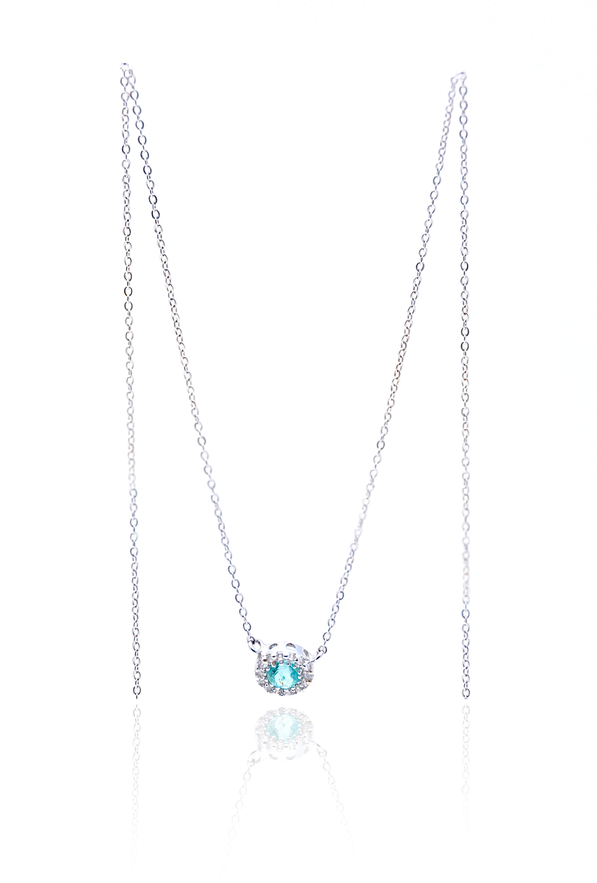 Lant aur alb de 18 k cu diamante 0.05 ct si smarald