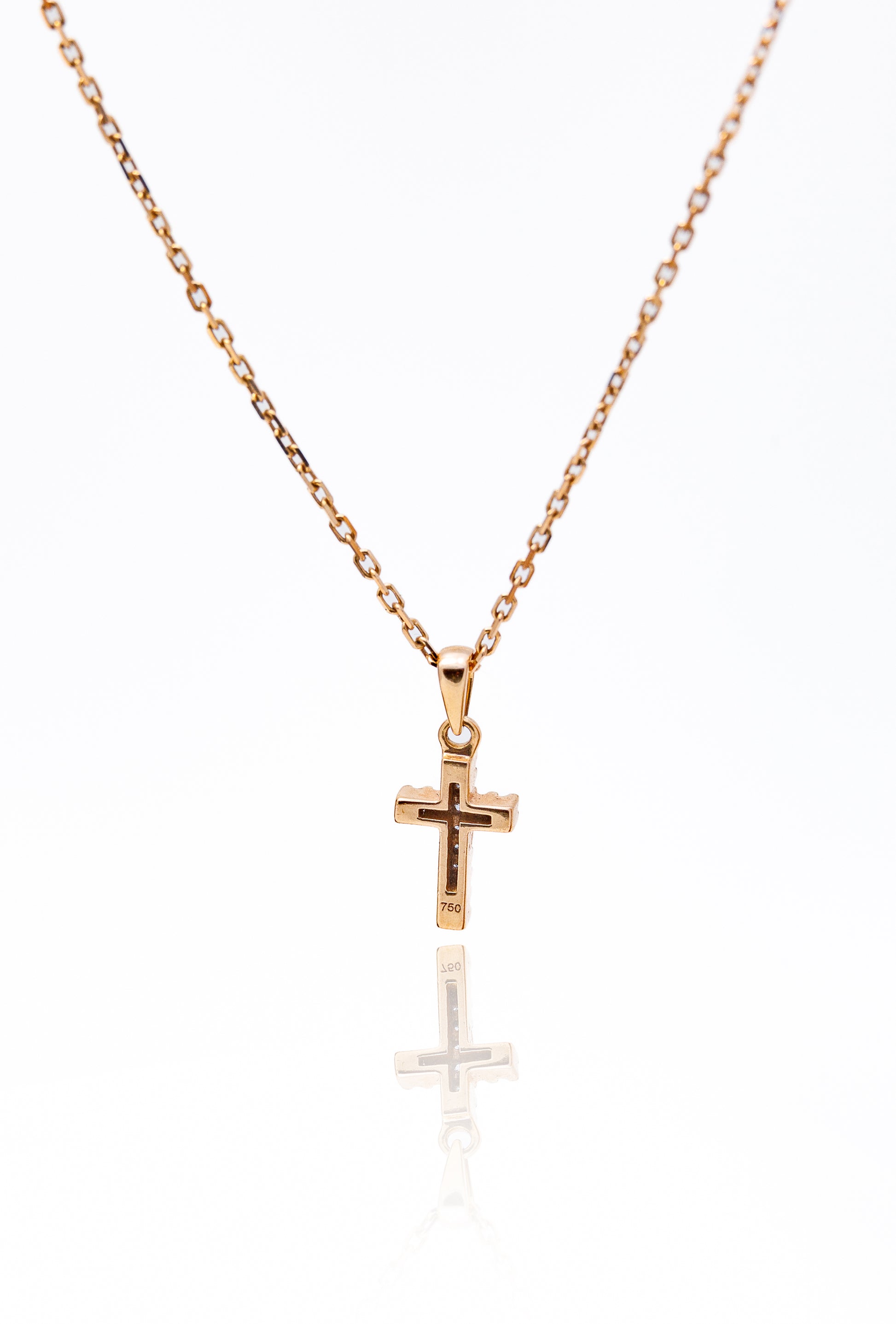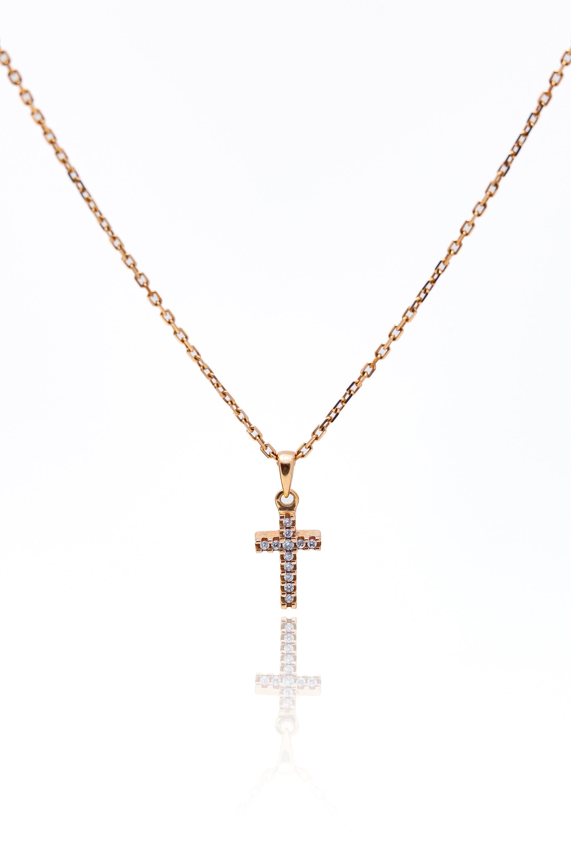 Lant cu pandativ cruce aur roze 18 k cu diamante de 0.10ct
