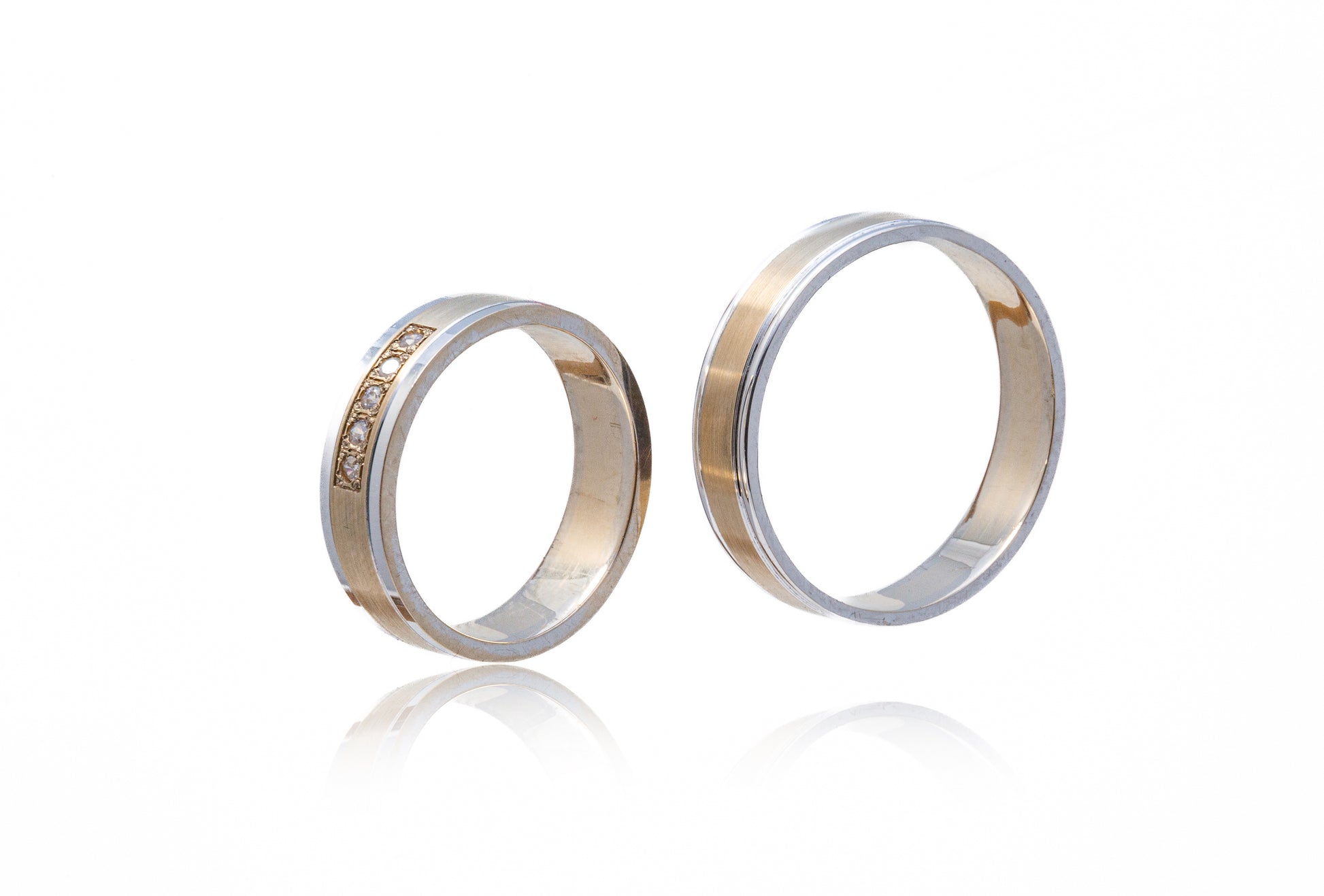 Verighete aur alb si aur galben 14k cu Diamante de 0.08CT