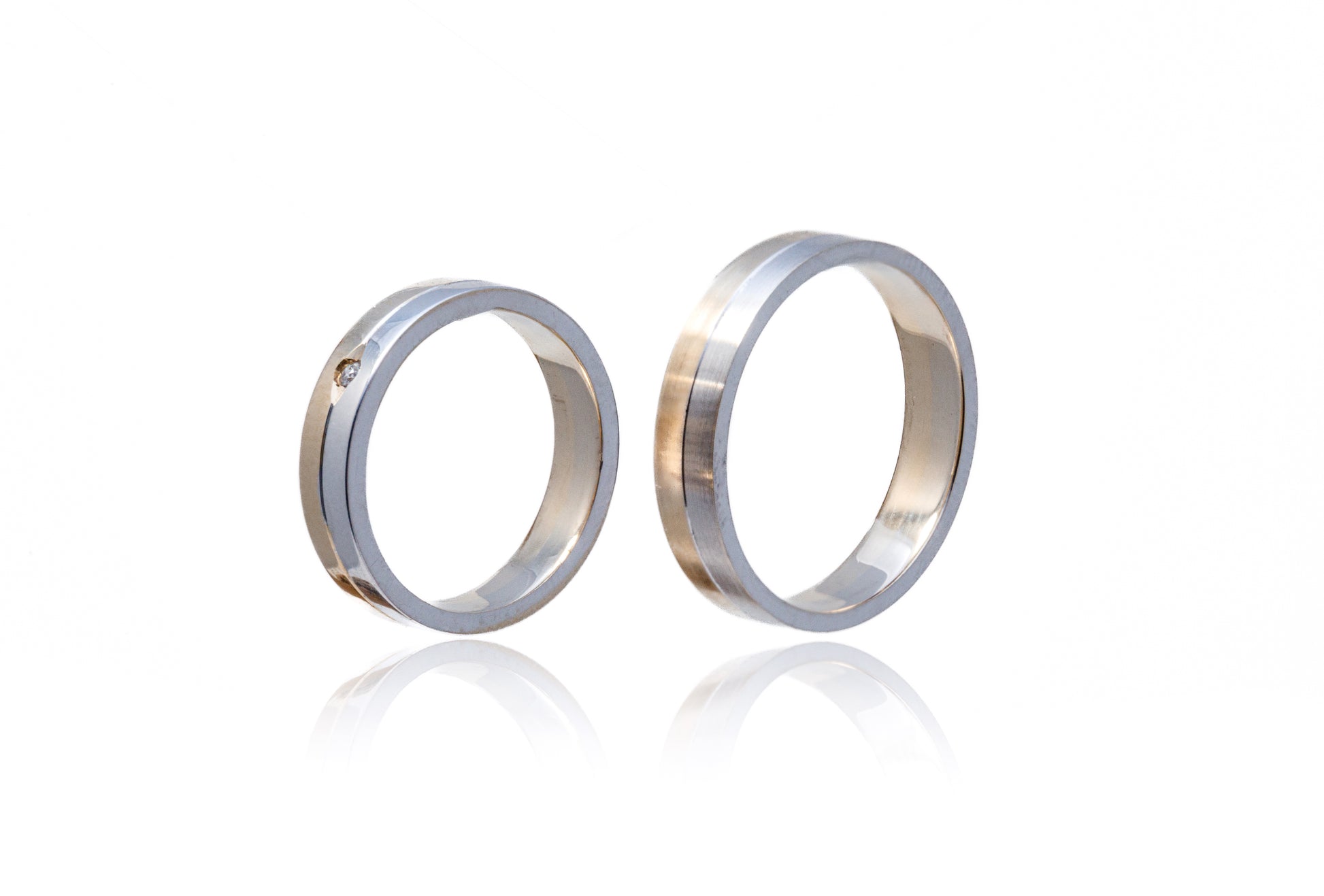 Verighete aur galben si alb 14 k cu Diamant de 0.02Ct