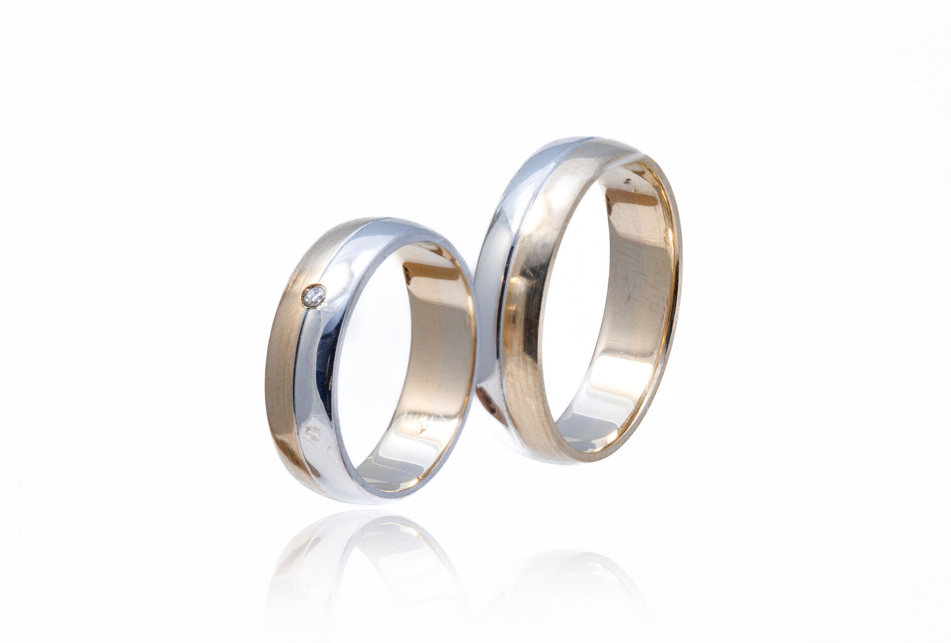 Verighete aur galben si alb 14k cu Diamant de 0.02CT
