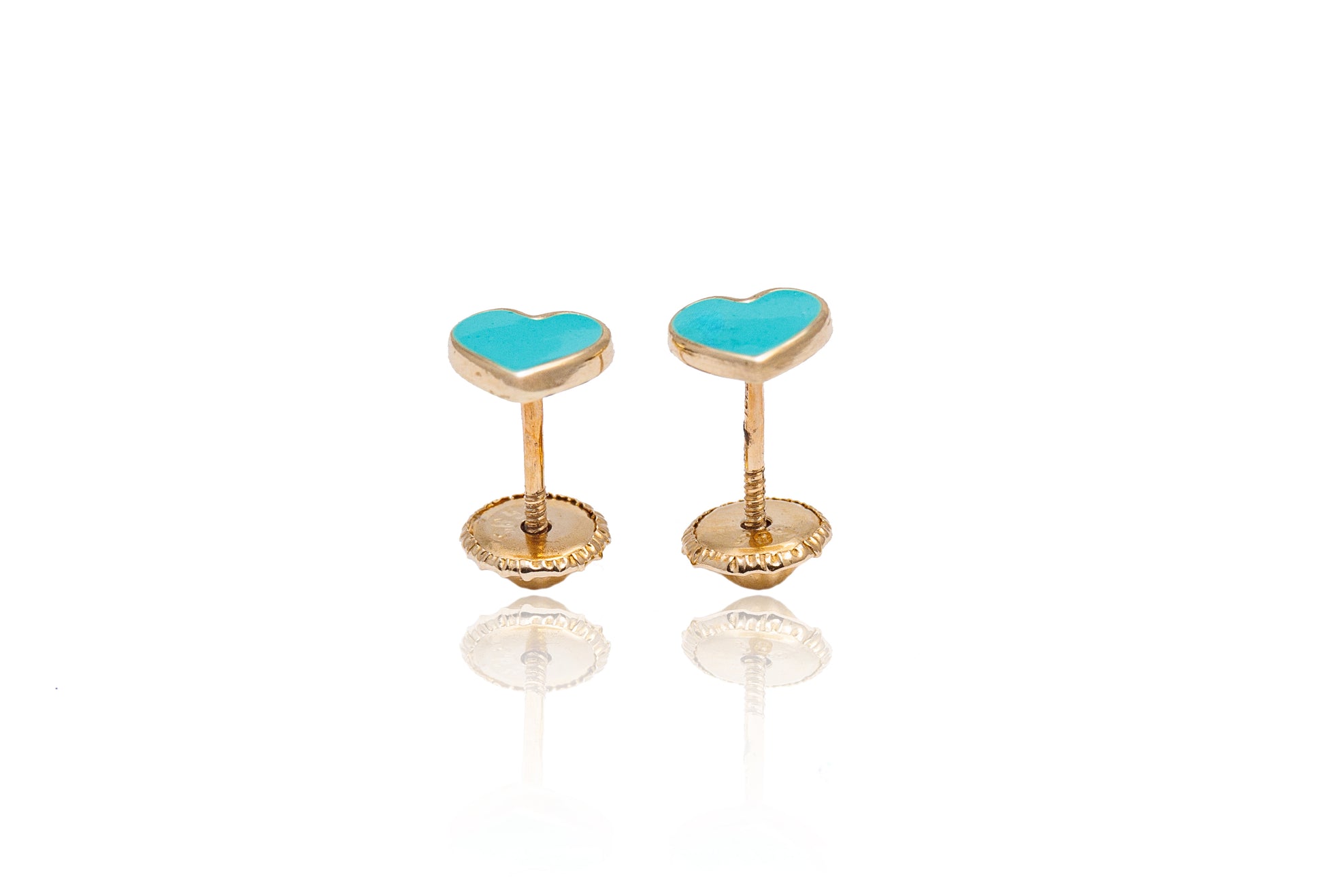 Cercei cu inimioara din aur galben de 14k pentru copii