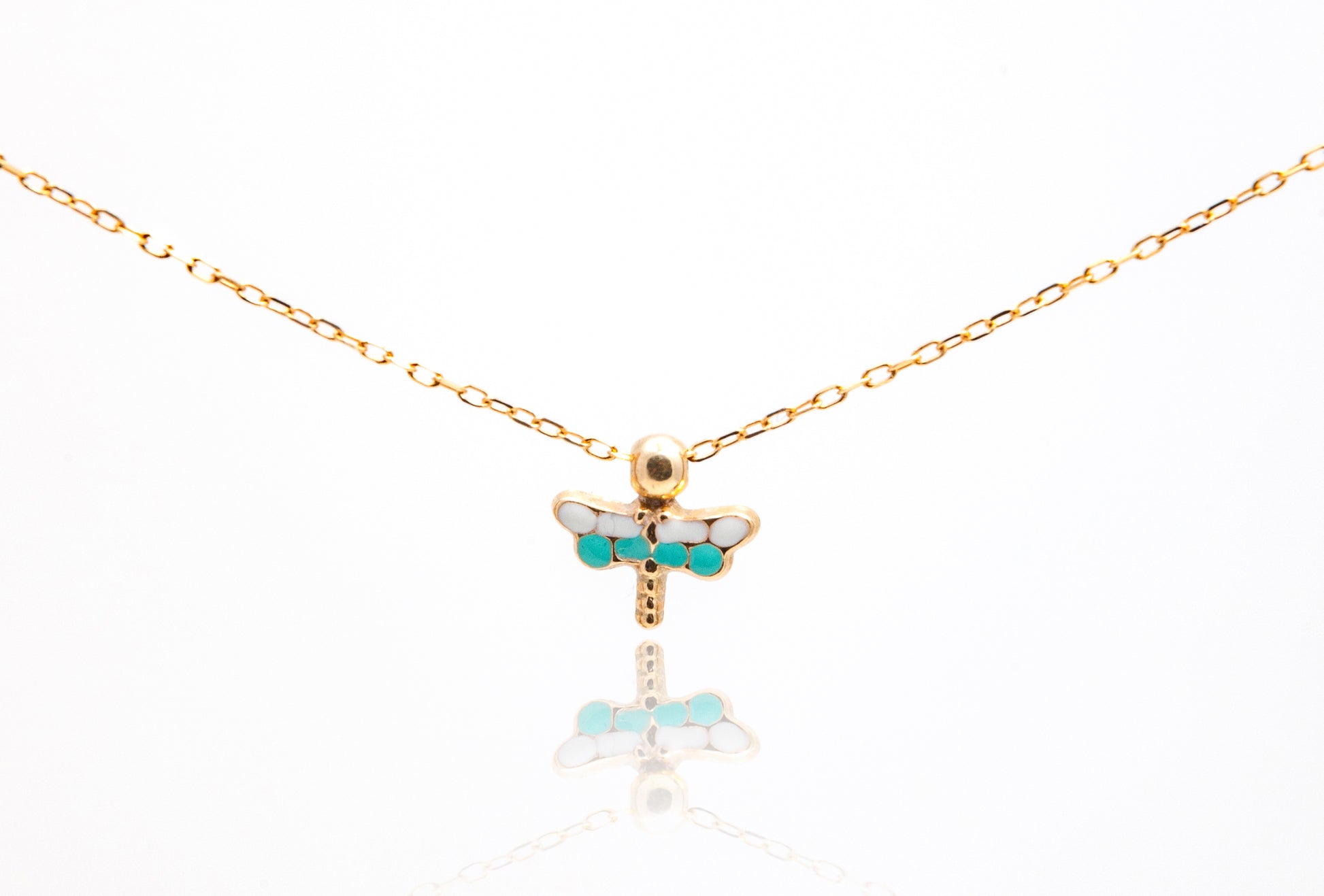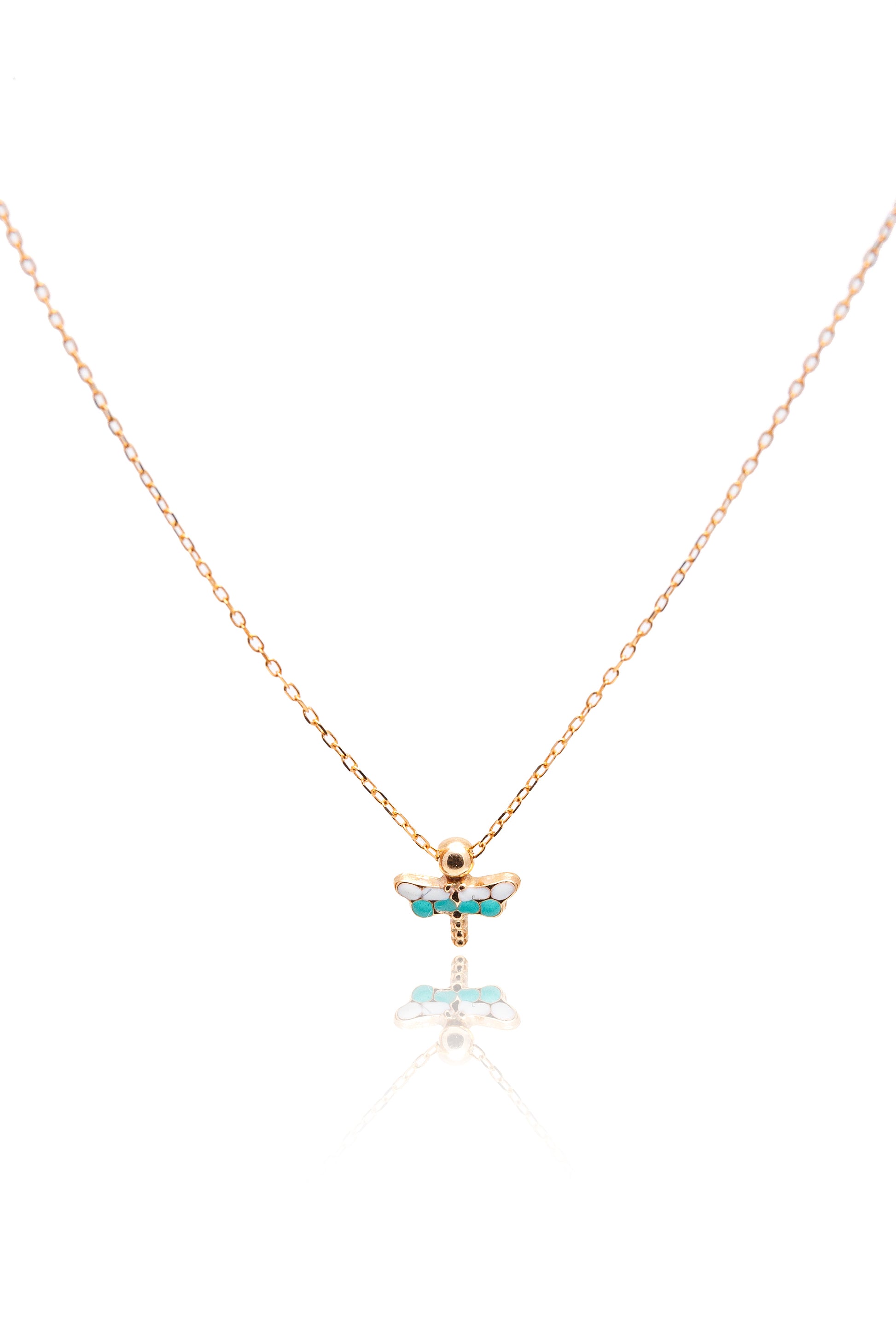 Lant cu pandantiv libelula din aur galben de 14k pentru copii