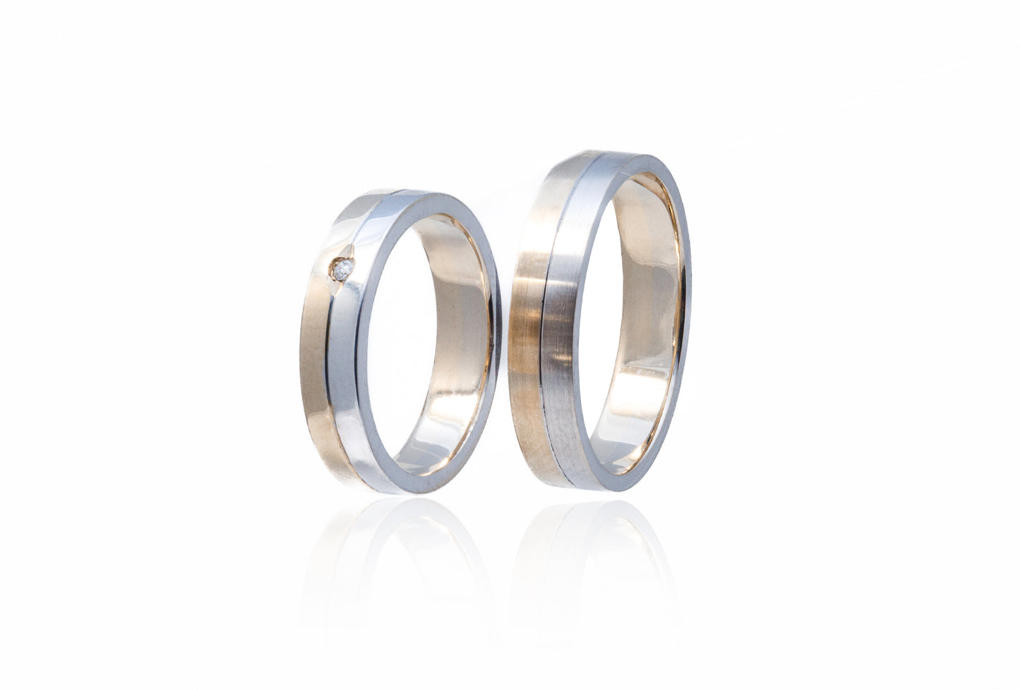 Verighete aur galben si alb 14 k cu Diamant de 0.02Ct
